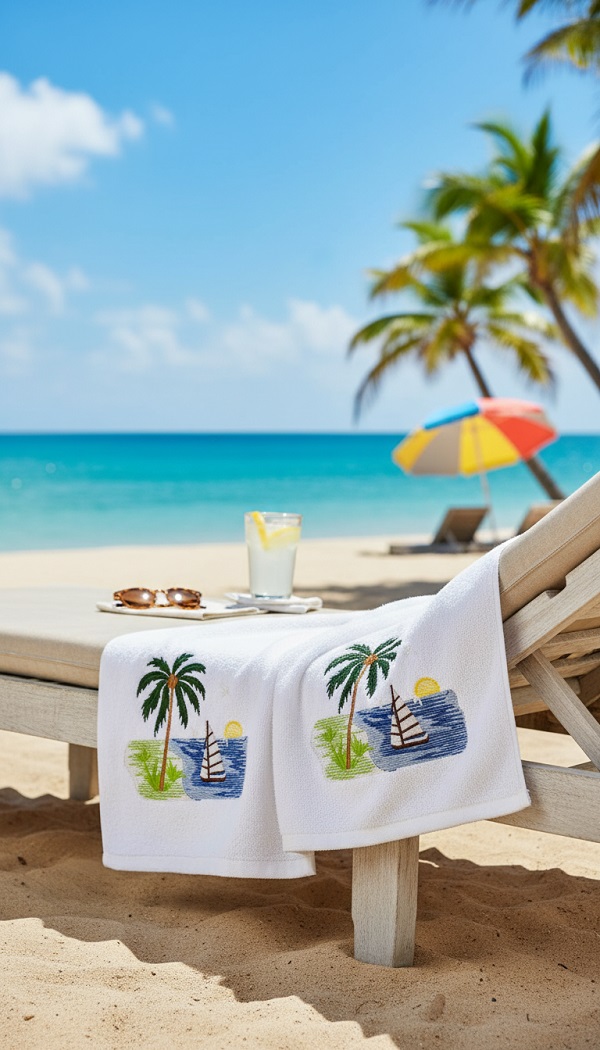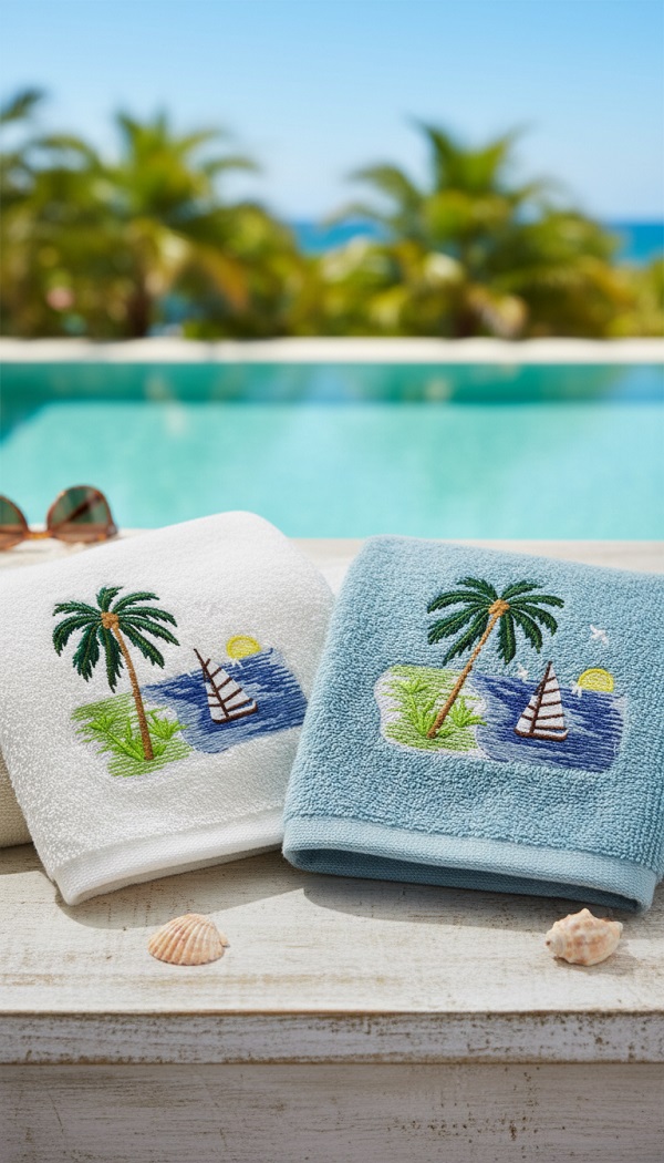 O design pode ser bordado em toalhas de cozinha, guardanapos, aventais, toalhas de mesa e assim por diante, em camisetas e decoração têxtil para o lar.